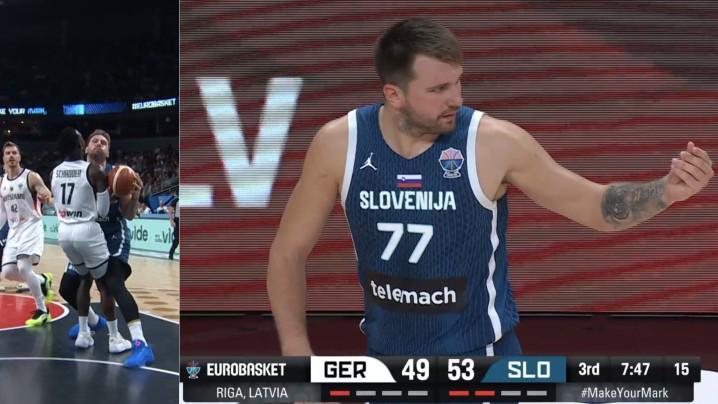 本场比赛,斯洛文尼亚头号球星东契奇表现出色但遭遇犯规麻烦。在比赛进行到第三节前段他吃到个人第四次犯规时,东契奇向当值裁判表达了不满,他冲着裁判做出了收钱的手势。