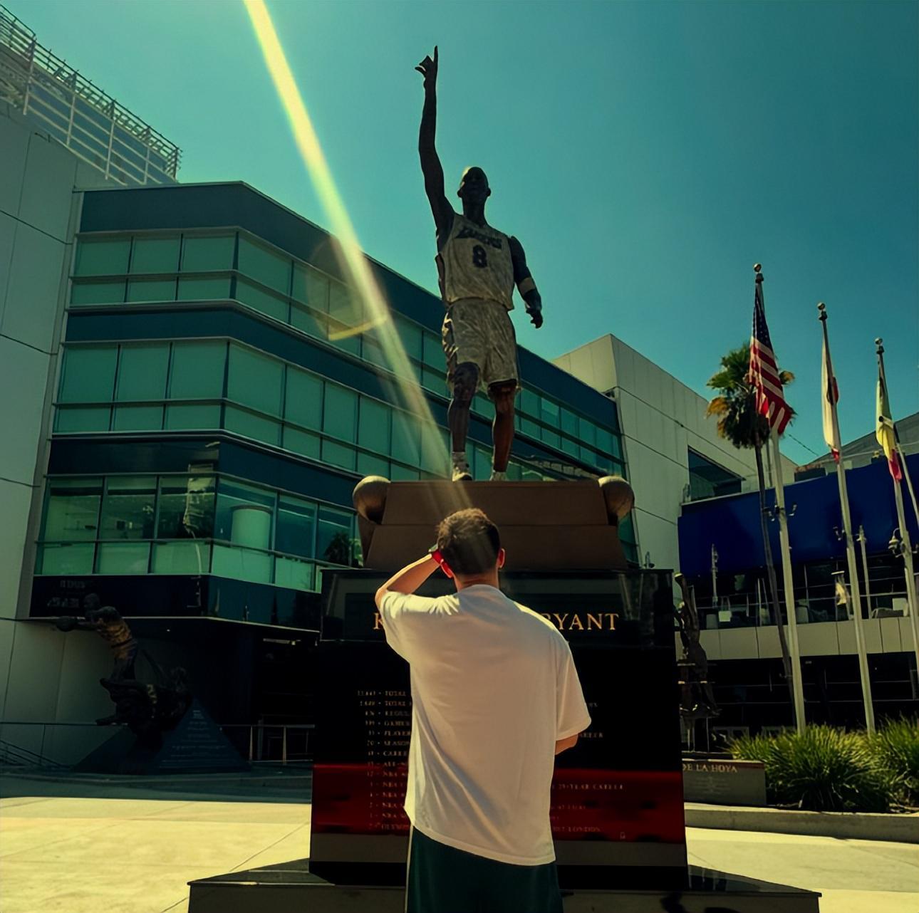 据悉,继伟这一次的美国之行,主要是为了参加自己所代言的运动品牌的相关活动。他先到洛杉矶湖人队主场科比雕像前致敬这位NBA超级巨星。然后又现身美国野球场,和当地的一些业余篮球爱好者打了一场比赛。