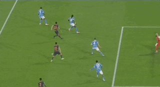 第32分钟,姆希塔良禁区内绊倒迪洛伦佐,主裁判观看回放后判罚点球,德布劳内主罚罚进,1-0。但丁丁因为发力不均拉伤大腿肌肉,旋即被奥利维拉换下。